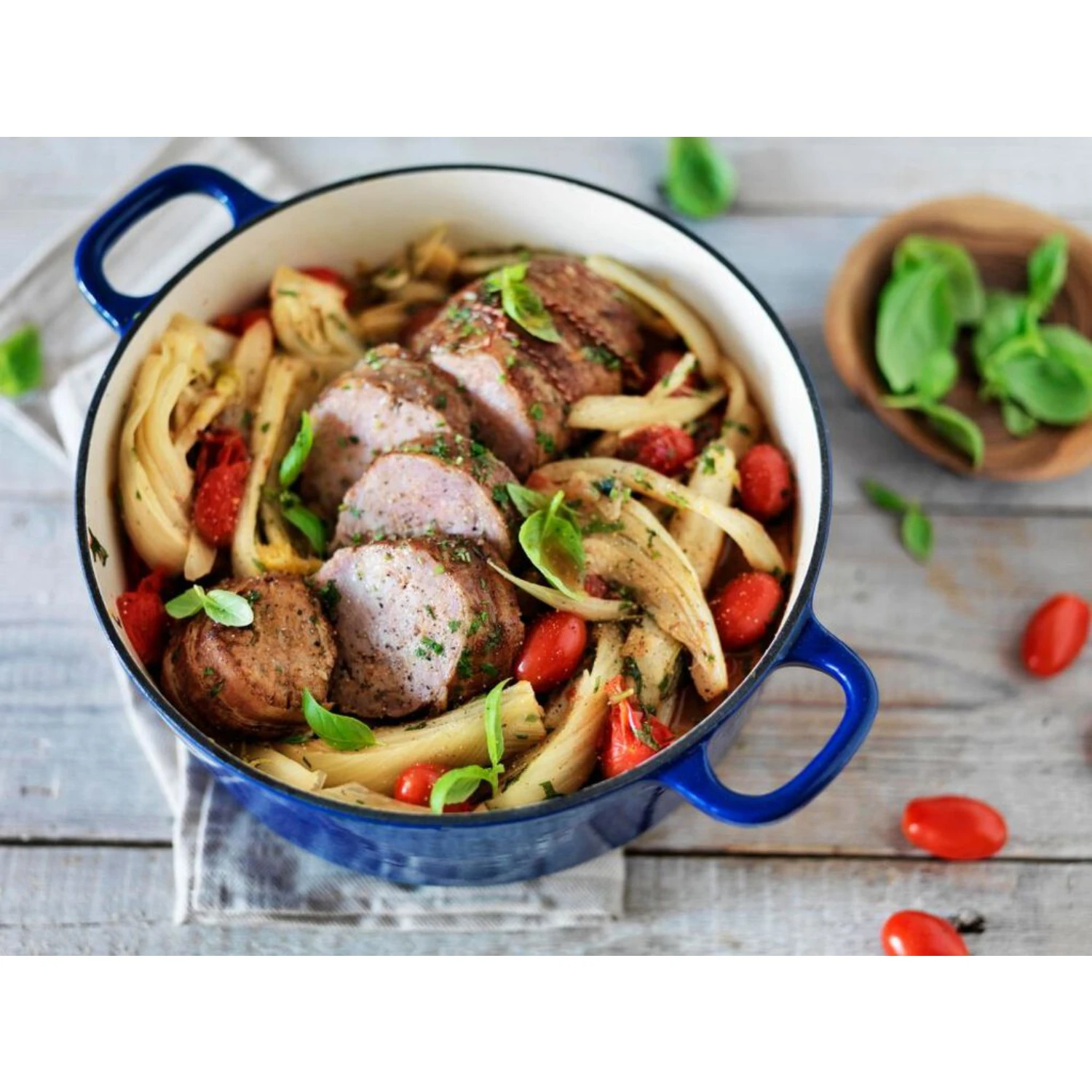 De BK Bourgogne braadpan Ø28 cm is een echte krachtpatser in de keuken. De karakteristieke braadpan is gemaakt van ambachtelijk gietijzer dat warmte goed opneemt en verdeeld over de hele pan. De geëmailleerde binnenkant met glad oppervlak voldoet aan de hoogste hygiëne- en voedingsnormen. De druipringen aan de binnenzijde zorgen er voor dat opkomend kookvocht gelijkmatig wordt verdeeld over het gerecht. De pan mag in de vaatwasser en is geschikt voor alle warmtebronnen.