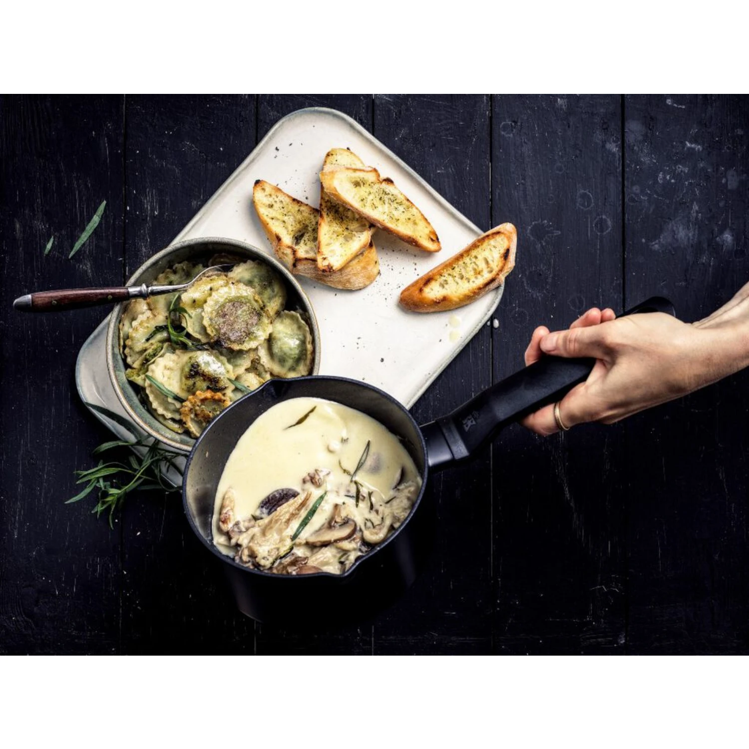 Met de BK Easy Induction steelpan Ø16 cm kook je gezond op alle warmtebronnen. Dankzij de PFAS-vrije keramische coating met anti-aanbakeigenschappen kun je ingrediënten korter en heter koken, met behoud van hun vitaminen en structuur. De coating is milieuvriendelijk geproduceerd en krasbestendig, de grepen zijn stevig en worden minder snel heet. De BK Easy Induction pan is uitermate geschikt voor inductie. Het aluminium van de pan warmt snel en gelijkmatig op. Daarbij vervormt de bodem niet én is de pan geschikt voor de oven (tot 160 °C).