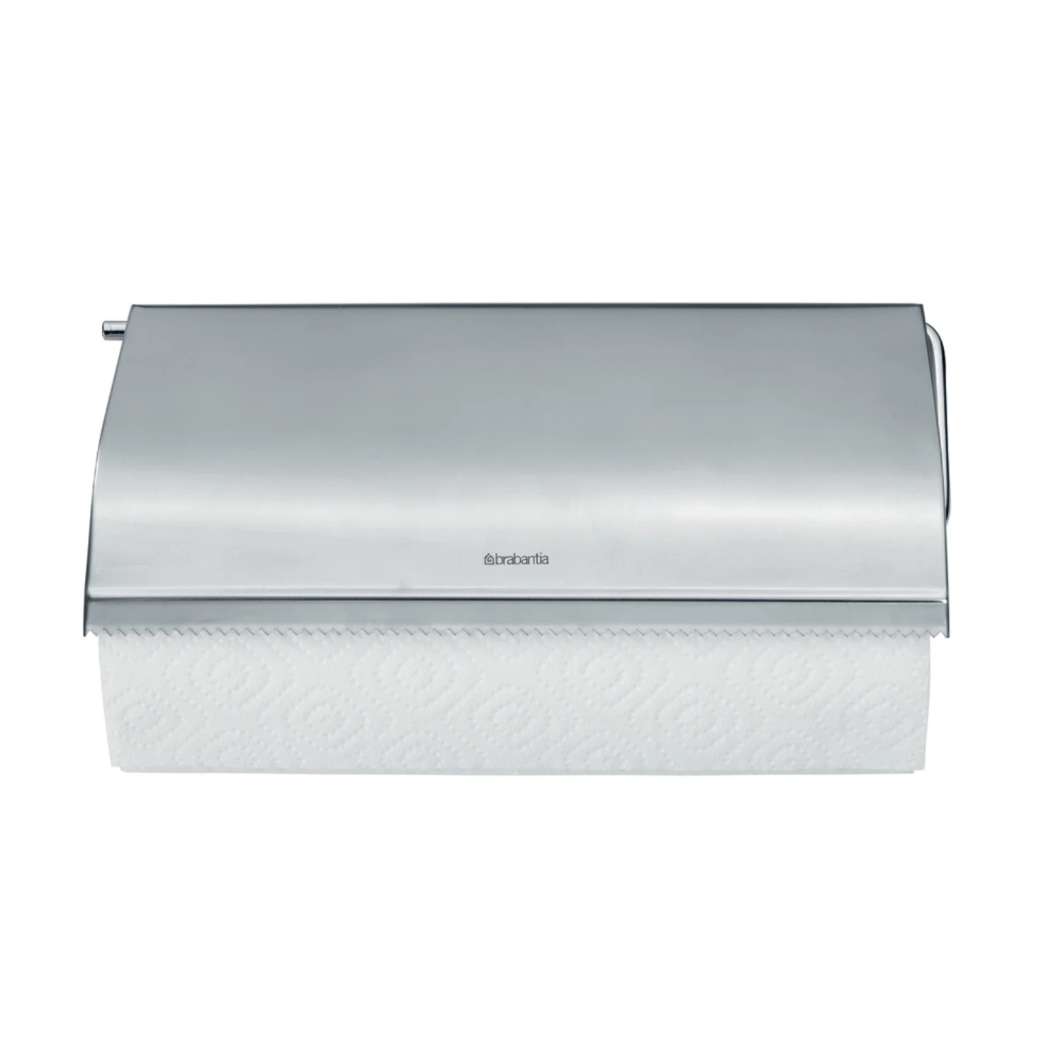 Bevestig deze handige keukenrolhouder van Brabantia aan de wand in de keuken en je hebt altijd een papiertje bij de hand. De houder is eenvoudig te bevestigen en is geschikt voor rollen tot 220 mm breed, deze zijn zowel links- als rechtshandig bij te vullen. De bovenplaat van de keukenrolhouder heeft een gekartelde rand.