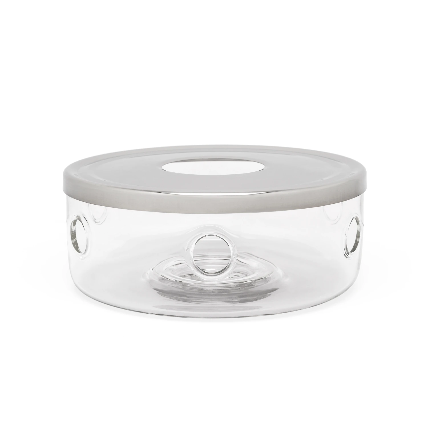 Glazen theelicht van hittebestendig glas dat perect pas bij de Glazen Minuet® Santhee van Bredemeijer. De bovenzijde is vervaardigd uit roestvrijstaal.