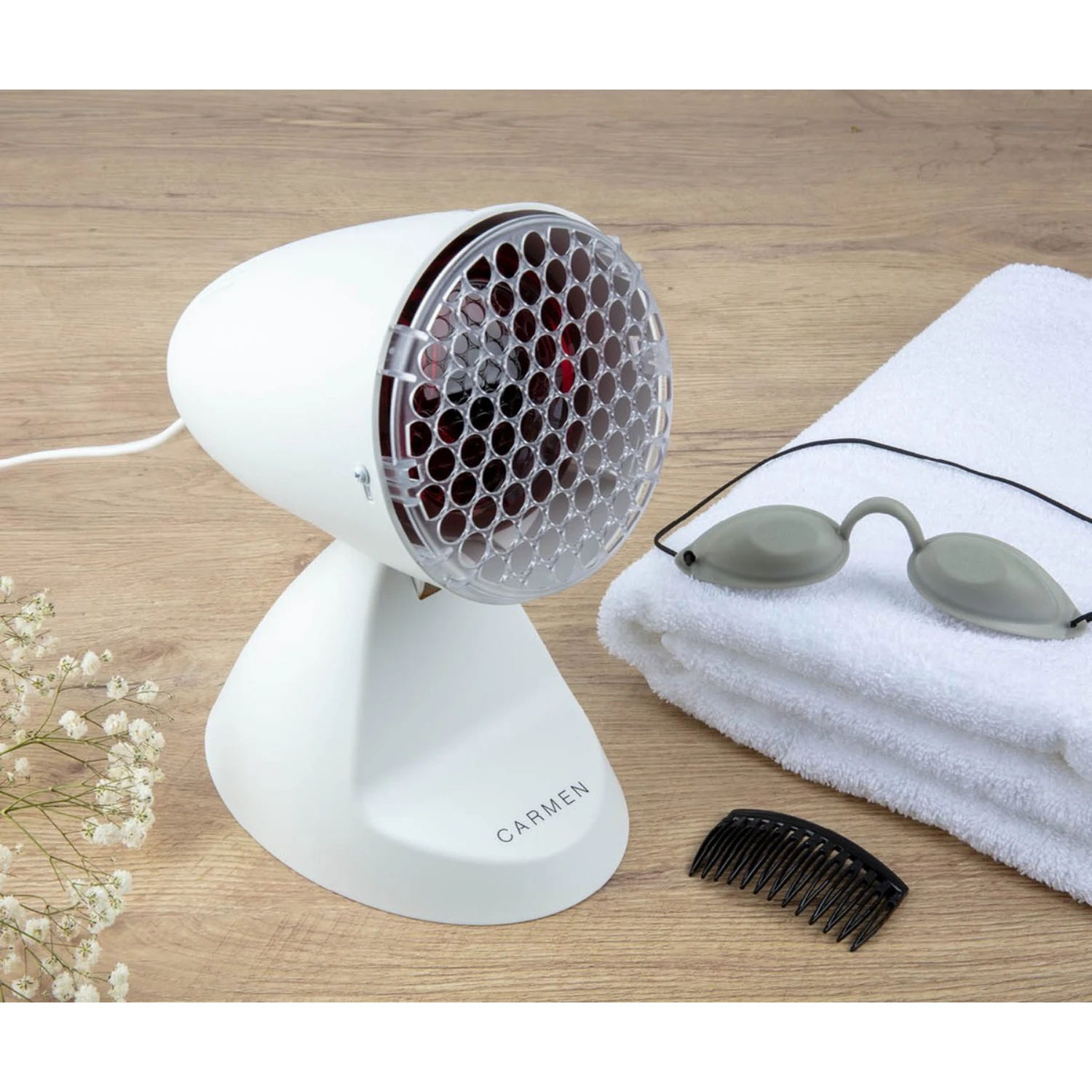 Ben je op zoek naar verlichting van spier- en gewrichtspijn? Met de Carmen CIL1001W infraroodlamp ontspan en verzacht je spieren en gewrichten. De stralen van de lamp stralen warmte uit wat zorgt voor een betere doorbloeding. Hierdoor worden afvalstoffen die de pijn veroorzaken sneller afgevoerd. De lamp wordt geleverd met een bril zodat je hem veilig kunt gebruiken mits je tot 60 cm afstand houdt met de lamp.