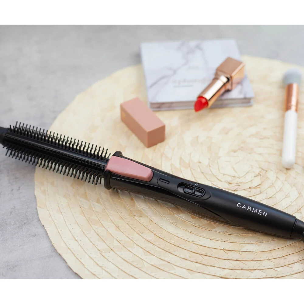 Maak de mooiste krullen met de Carmen CB3085 Curlomatic krulborstel. De zwart met roze krultang is ideaal om volume in je haar mee te creëren. De krulborstel is geschikt voor kort tot middel lang haar en werkt op 25 Watt.