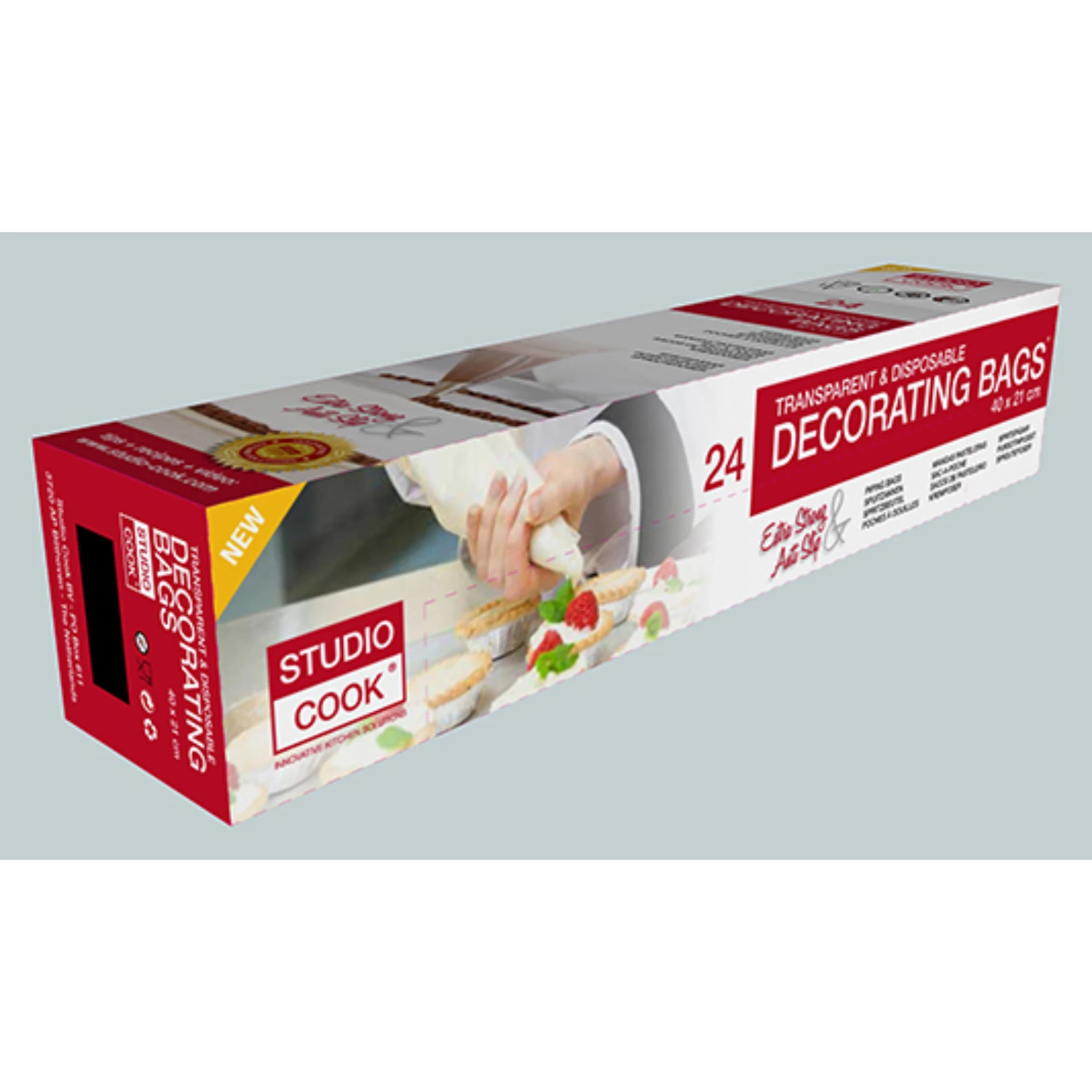 Als jij op zoek bent naar een manier om jouw taarten nog mooier te maken? Dan is een decoratieve spuitzak precies wat jij nodig hebt. Met deze zakken breng jij moeiteloos slagroom of schuim aan op jouw baksels. De zakken zijn transparant en geschikt voor eenmalig gebruik. De verpakking bevat 24 spuitzakken, met een formaat van 21x40cm.