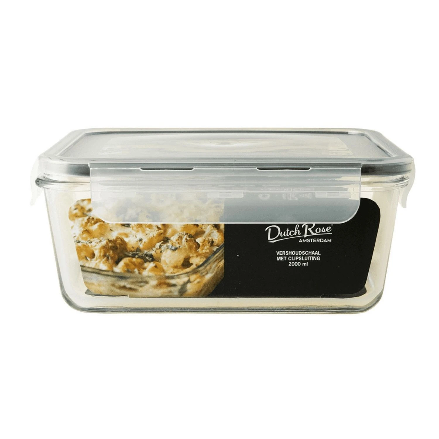 De vershoudschaal van Dutch Rose is perfect om je maaltijd vers te houden. De deksel heeft 4 clips die er voor zorgen dat de vershouddoos luchtdicht en lekvrij blijft. De schaal is gemaakt van extra hard borosilicaatglas en is hittebestendig tot wel 290 graden. Ook kan de schaal in de vaatwasser en diepvries en is hij zonder deksel oven- en magnetronbestendig. De plastic deksel is BPA vrij en heeft een witte sluitring. De schaal heeft een inhoud van 2 liter en heeft een afmeting van 23 x 17.5 x 9.5 cm.