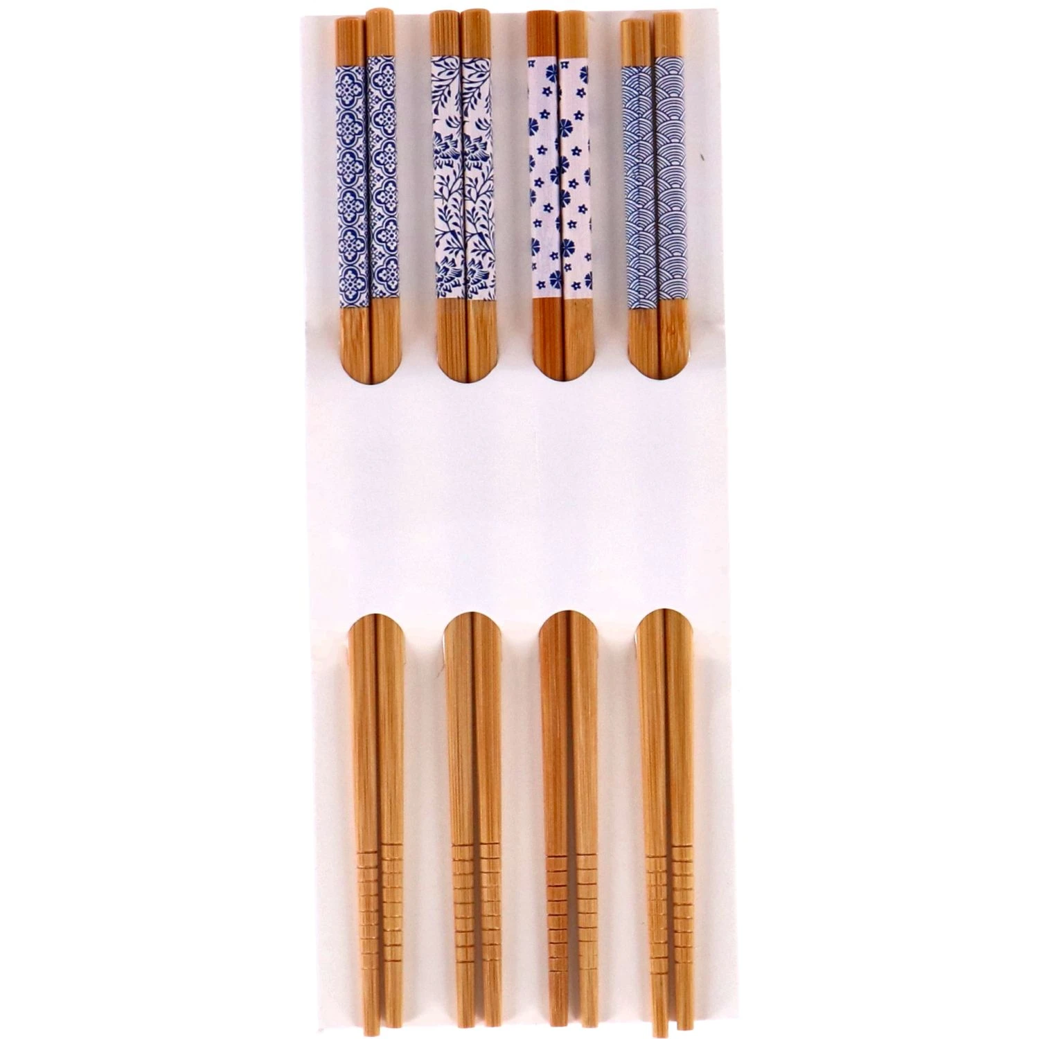 Handige eetstokjes voor het eten van traditionele Oosterse gerechten. In Azië worden eetstokjes vaak gebruikt bij het eten van noodles of sushi. Schuif je bestek opzij en probeer het ook eens uit met deze eetstokjes gemaakt van bamboe. Elk setje heeft een ander detail aan de bovenkant. 4 sets.