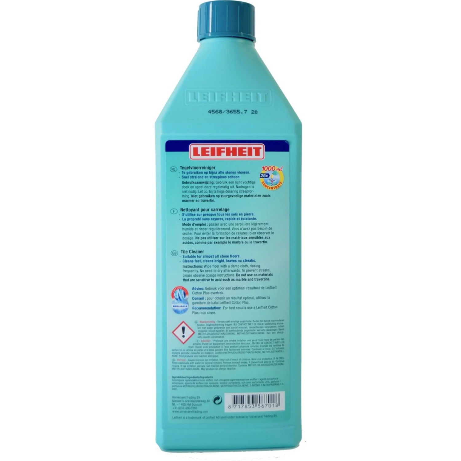 Maak uw tegelvloeren eenvoudig en effectief schoon met de Leifheit Tegel Reiniger! Deze krachtige reiniger is speciaal ontworpen voor het reinigen van tegelvloeren en is geschikt voor zowel keramische als natuurstenen tegels. De formule verwijdert grondig vuil, vet en kalkaanslag en laat uw vloeren streeploos en glanzend achter. De Leifheit Tegel Reiniger is verkrijgbaar in een handige fles van 1 liter, waardoor u meerdere keren kunt reinigen voordat u een nieuwe fles nodig heeft. Voeg deze hoogwaardige reiniger toe aan uw schoonmaakarsenaal en geniet van schone, glanzende tegelvloeren!
