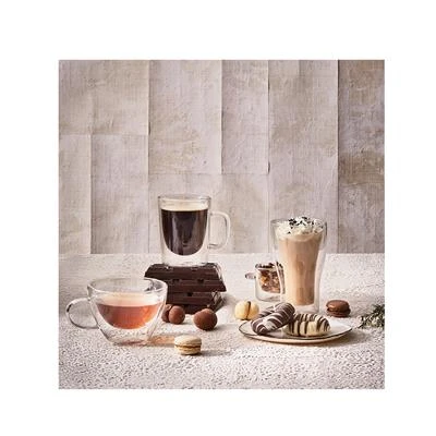 De Luigi Bormioli Mok Dubbelwandig Laag Model 38,5 cl is een luxe set van 2 glazen. De glazen hebben een perfecte inhoud voor een lekkere cappuccino. De dubbele wand zorgt er voor dat de koffie of thee langer warm blijft. Na gebruik kunnen de glazen in de vaatwasser.