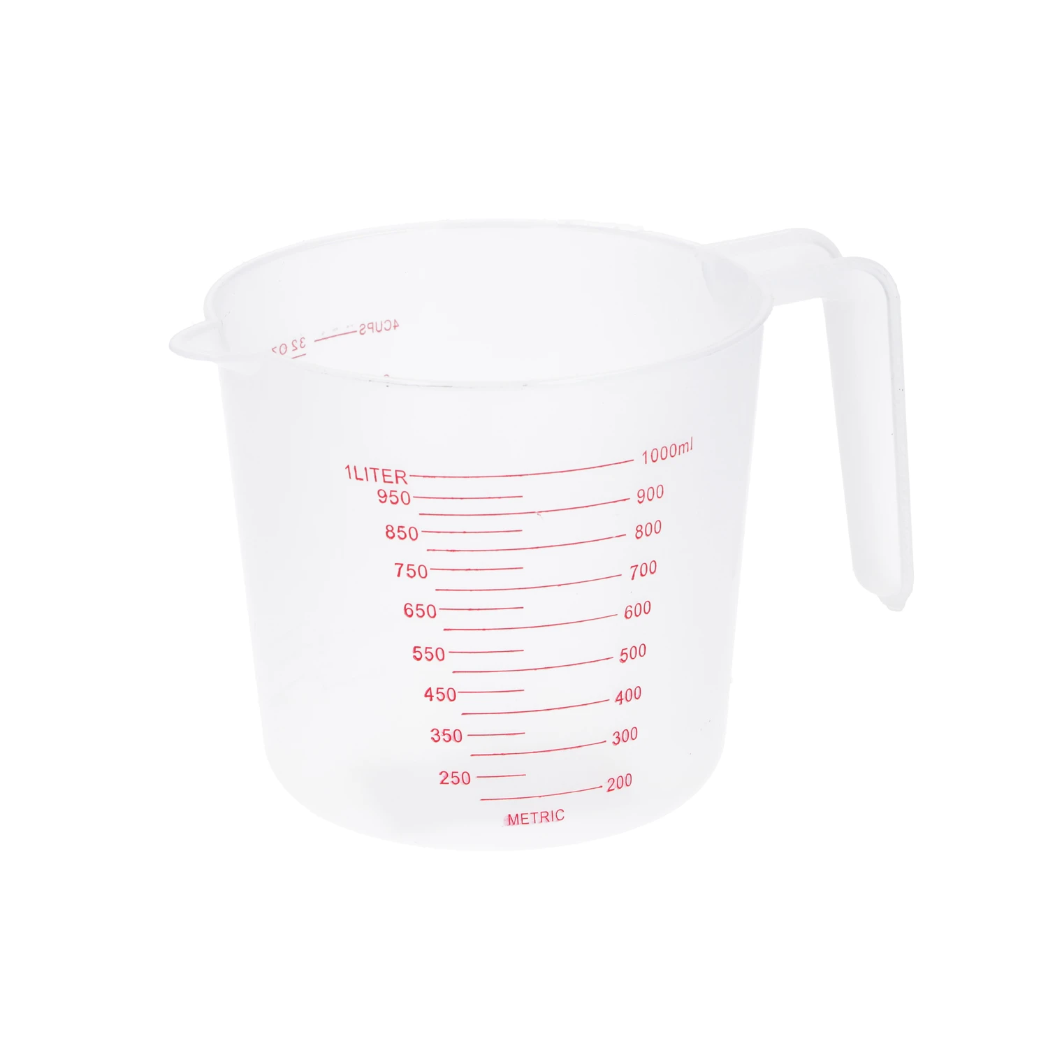 Meet nauwkeurig vloeistoffen af met deze transparante maatbeker met een inhoud van 1 liter.