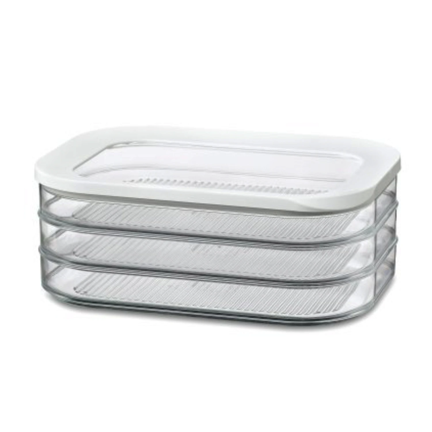 Mepal Modula Vleeswarendoos 550/3, voorzien van een doorzichtige deksel met witte ring. De rechthoekige Modula vleeswarendoos met afgeronde hoeken heeft een inhoud van 1650 ml en geeft direct zicht op inhoud, ook in de koelkast! Afmeting: 224 x 160 x 86 mm.