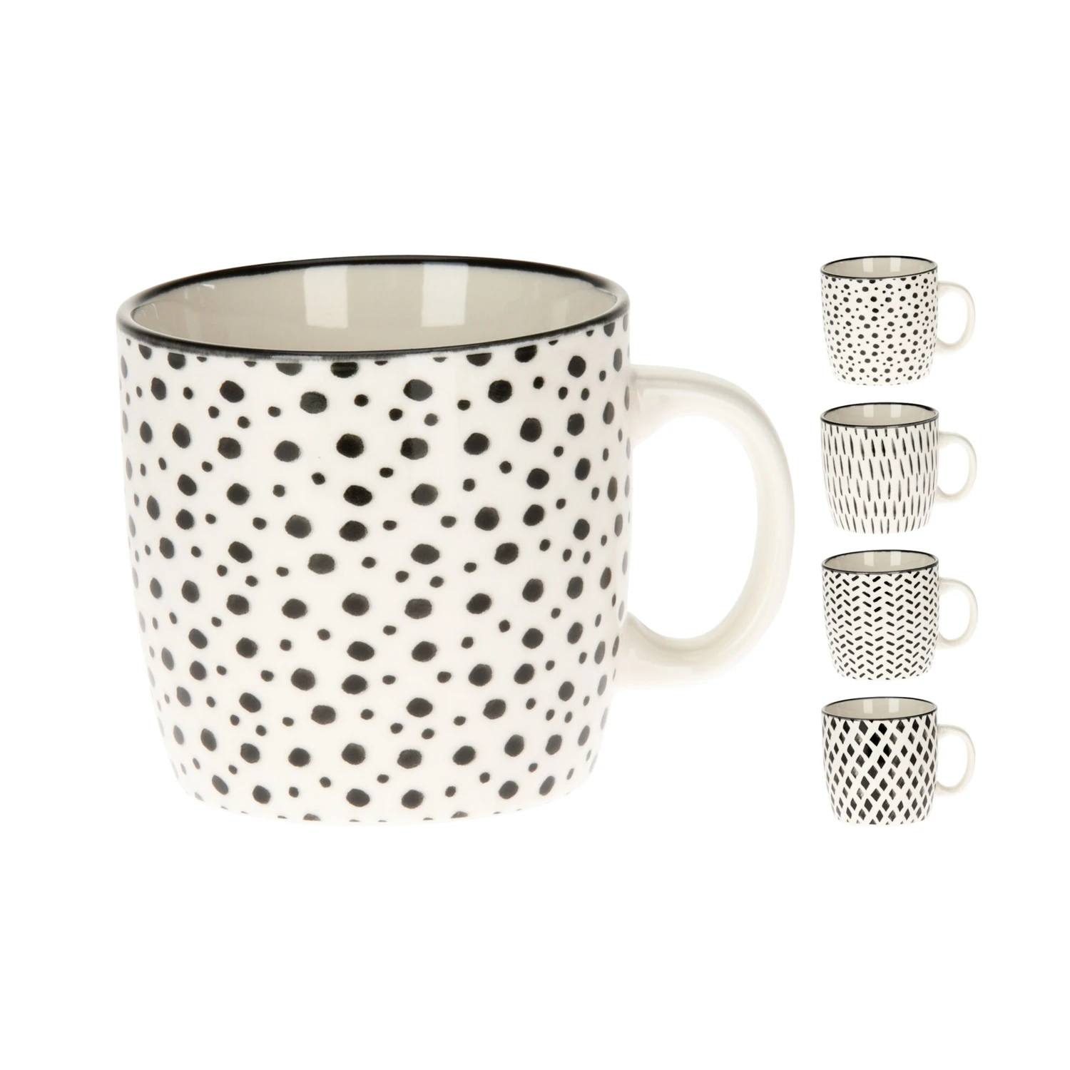 Jij drinkt je favoriete drankje stijlvol en comfortabel uit deze porseleinen mok met zwart-wit dessin! De mok heeft een mooie vorm, stevig handvat, en een inhoud van 200 ml. Let op: deze mok is verkrijgbaar met 4 verschillende dessins, vooraf is helaas niet te bepalen welke jij ontvangt.