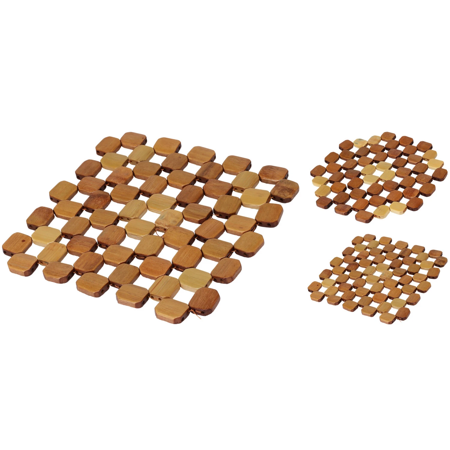 Jij hoeft je nooit meer zorgen te maken om het beschadigen van je tafel of aanrecht met deze bamboe onderzetter! Hij is gemaakt van aaneengeschakelde bamboe blokjes, en zal er gegarandeerd voor zorgen dat jouw pannen en ovenschalen veilig staan en geen beschadigingen of verkleuringen achterlaten! Let op: er zijn 2 verschillende versies beschikbaar, vooraf is helaas niet te bepalen welke je zult ontvangen.