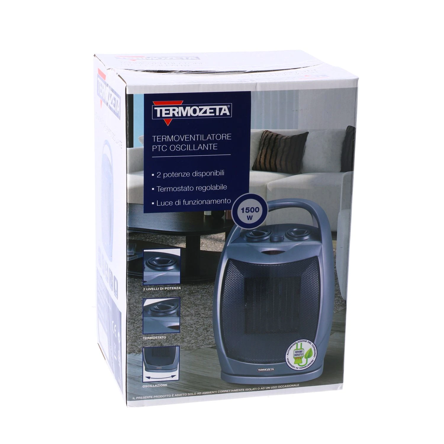 Deze oscillerende keramische ventilatorverwarming is ideaal om snel de ruimte te vullen met warmte of in de zomer met een koele bries. De oscillerende luchtverhitter heeft een regelbare thermostaat en zorgt ervoor dat de warmte zich automatisch 90 ° naar links en rechts de ruimte in blaast. De ventilatorkachel heeft een vermogensselectie van 750 of 1500 Watt en een ventilatiefunctie.