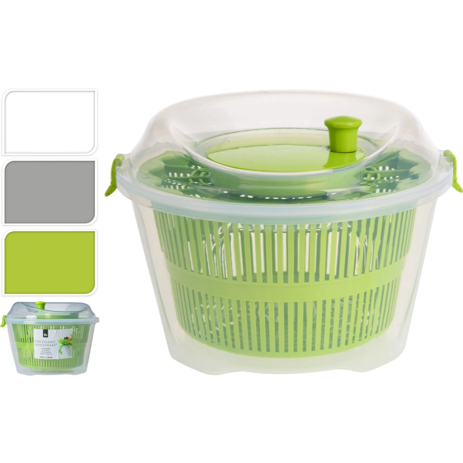 Met een afmeting van 24 cm bij 16 cm is deze centrifuge ook geschikt voor grotere salades. Door het uitneembaar design past deze slacentrifuge in vrijwel elke vaatwasser.