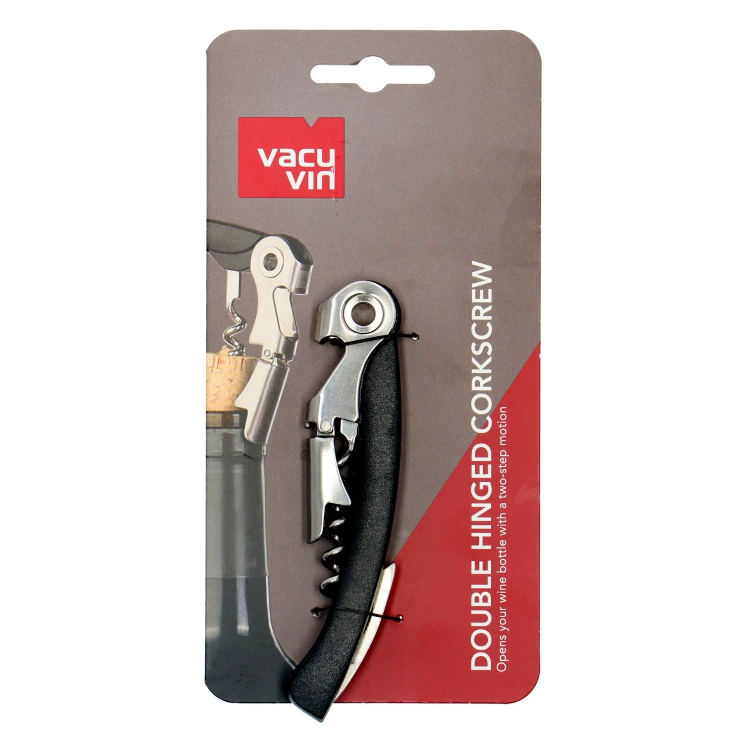 De Vacu Vin Dubbele Kurkentrekker is een handig hulpmiddel voor het openen van wijnflessen. Met de dubbele hefboomtechnologie verwijder je eenvoudig de kurk uit de fles, zonder deze te beschadigen. De kurkentrekker is geschikt voor alle soorten kurken, waardoor hij veelzijdig inzetbaar is. Bovendien is de Vacu Vin Dubbele Kurkentrekker voorzien van een geïntegreerde flesopener, zodat je ook gemakkelijk bierflesjes kunt openen. De compacte en ergonomische vormgeving zorgt ervoor dat de kurkentrekker comfortabel in de hand ligt en gemakkelijk op te bergen is. Met deze handige kurkentrekker van Vacu Vin geniet je nog meer van je favoriete wijnen.