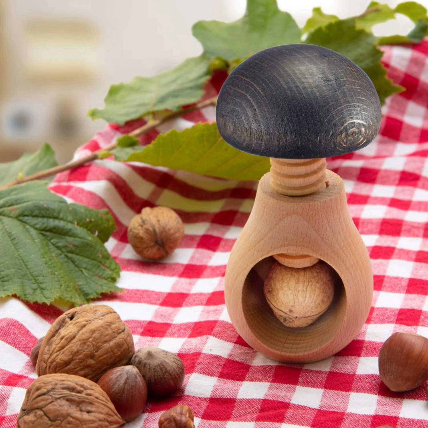 Stevige notenkraker van Westmark in de vorm van een paddenstoel voor het gemakkelijk kraken van notenschalen; geschikt voor diverse soorten noten, zoals hazelnoten, walnoten en amandelen. De notenkraker heeft een schroefsysteem hiermee kun je zuiver en moeiteloos noten kraken door aan de paddenstoelenhoed te draaien zonder de vrucht te verpletteren; plaats de noot in de paddenstoelvormige behuizing waarin de gebroken schaal wordt opgevangen.